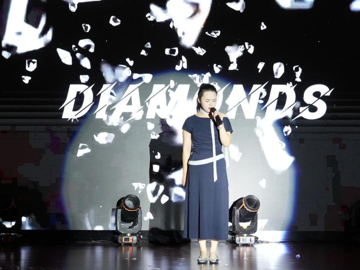 歌曲《diamonds》开唱,嘹亮又富有力量的嗓音如同钻石般闪耀,唱出青春的璀璨与坚定。