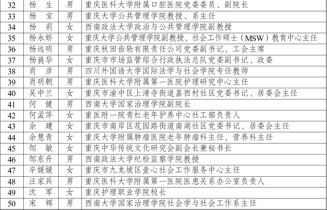 我院三位教师入选重庆市社会工作专家库