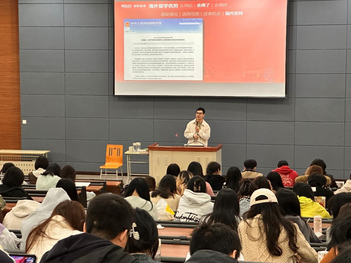 分享会还邀请到新东方的讲师为有意考研或留学的同学提供专业的指导。他们详细解读了考研选方向、选院校的策略,帮助同学们根据自己的兴趣和专业背景做出合理选择,制定科学的备考计划。