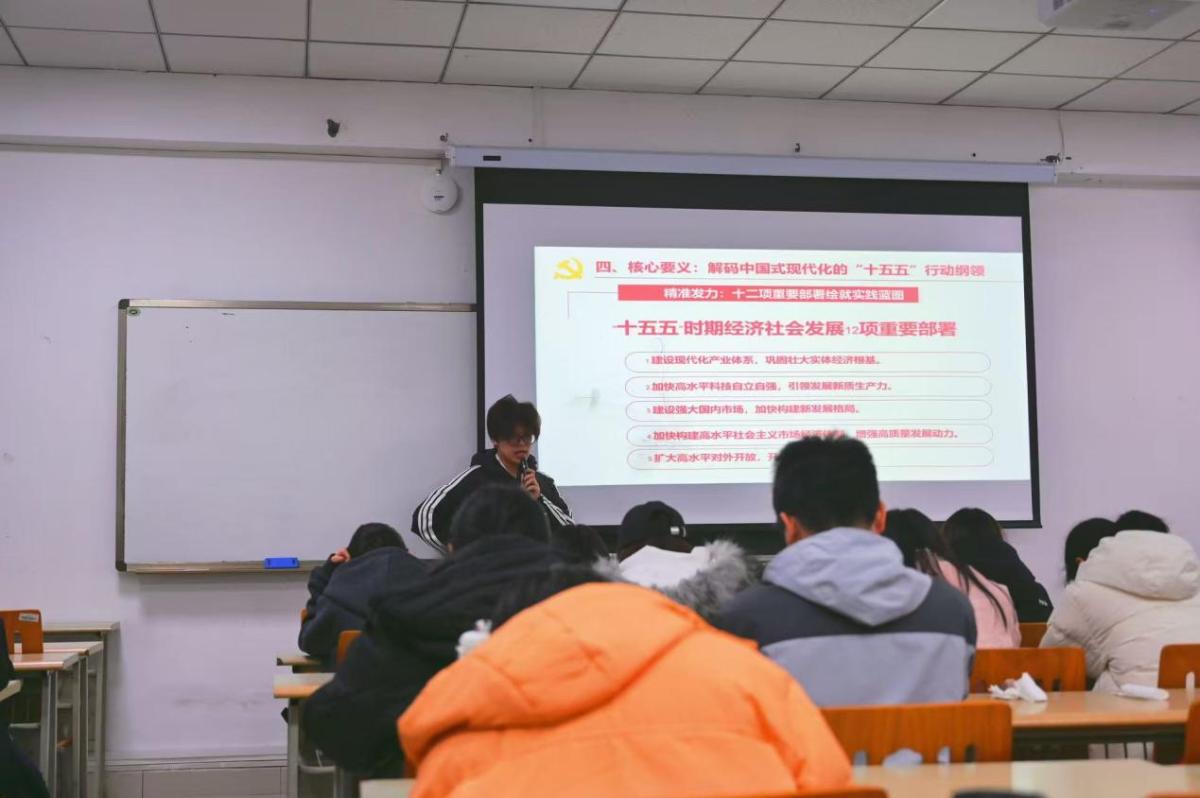 学习以全会审议通过的《建议》文本及相关材料为基础,围绕“十四五”发展成就与“十五五”战略规划进行系统梳理与研讨。同学们首先回顾了“十四五”时期我国经济社会发展取得的辉煌成就,特别是在经济高质量发展、科技创新引领新质生产力发展、全面深化改革与高水平对外开放、全过程人民民主与全面依法治国深入实践等方面取得的显著进步。大家一致认为,这些成就的取得,根本在于习近平新时代中国特色社会主义思想的科学引领,为迈向新时代奠定了坚实基础。