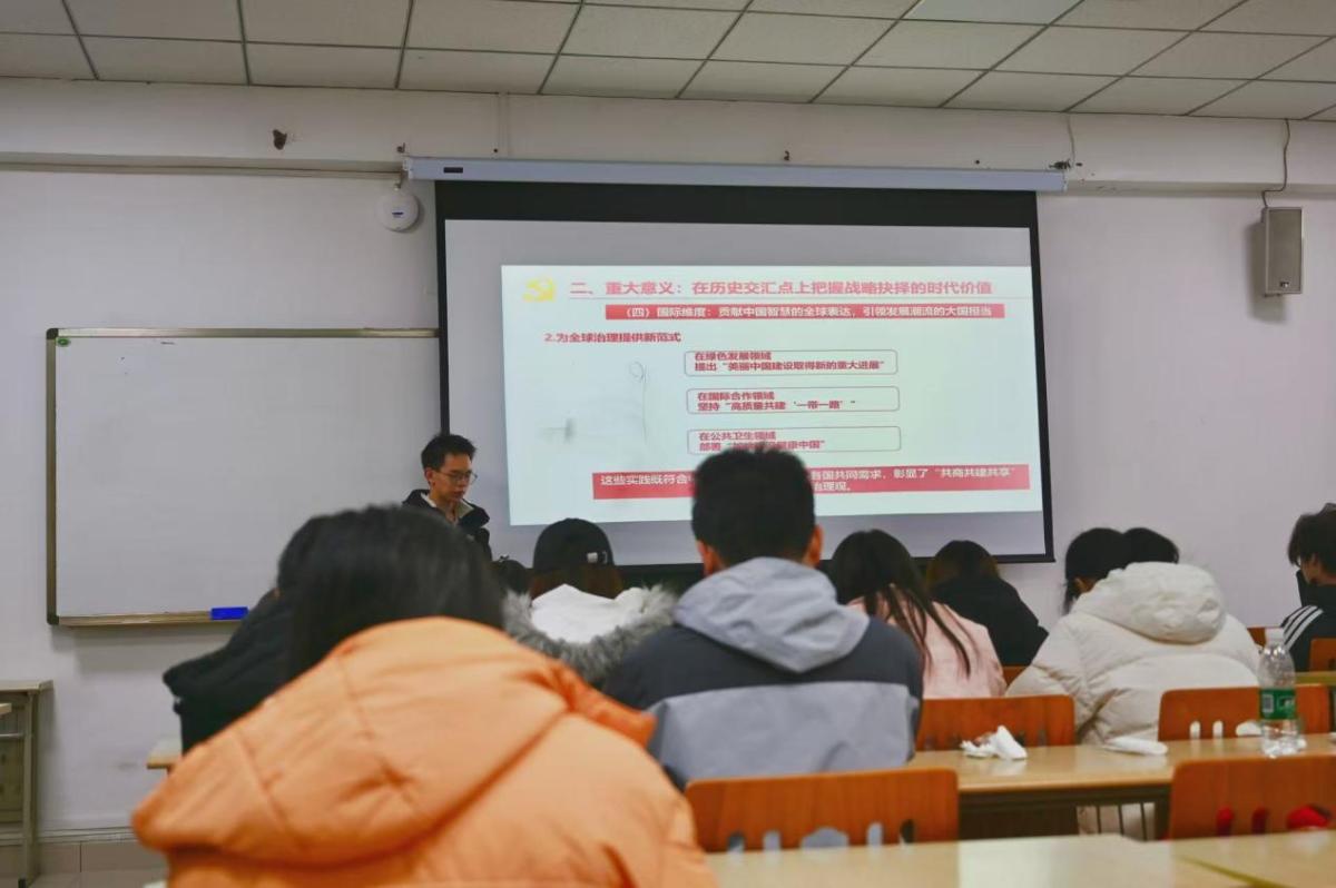 在“贯彻落实”部分的讲解中,主讲人围绕以理论武装夯实落实根基、以系统思维破解落实难题、以制度建设强化落实效能这三个方面,与同学们讨论了如何将宏伟蓝图转化为个人勤学笃行的实际行动。大家表示,在未来的学习路上会以实际行动践行“请党放心,强国有我”的青春誓言。