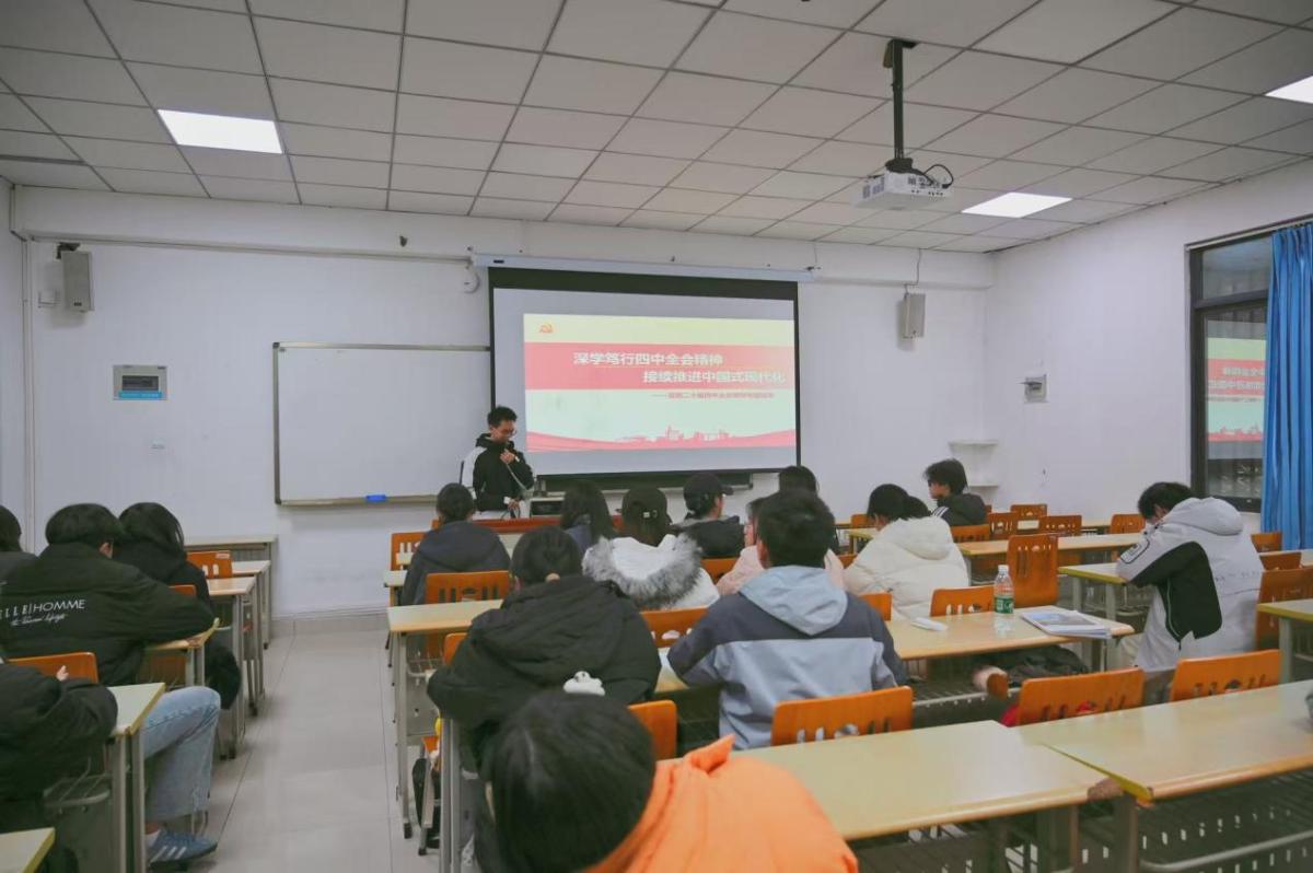 为深入学习贯彻党的二十届四中全会精神,深刻把握全会重大决策部署的核心要义与时代内涵,引导青年学子将思想和行动统一到中央精神上来,我院团总支于12月11日在歌乐楼A107组织学生骨干进行专题学习培训。我院学生会全体成员及院“青马工程”大学生骨干培训班学员参加了本次学习培训。