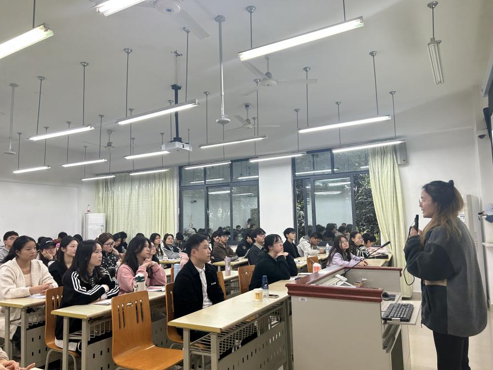 在互动环节,同学们踊跃提问,气氛热烈。围绕专业学习、职业规划、实务中的具体困惑等,两位前辈结合自身经历,给予了细致、中肯的解答。与“亲学姐”的亲切交流和“活地图”式行业导师的精准指点,让同学们深感机会难得,受益匪浅。