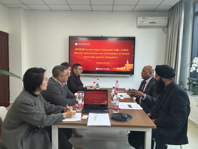 20251121日,亚洲多元争议解决研究院(Asian Institute of Alternative Dispute Resolution, AIADR)主席 Sundra Rajoo 一行到访学院。我院院长王伟、副院长邓晓梅、法律硕士教育中心主任程璐以及法律英语教学负责人袁振华作为教师代表出席交流活动。