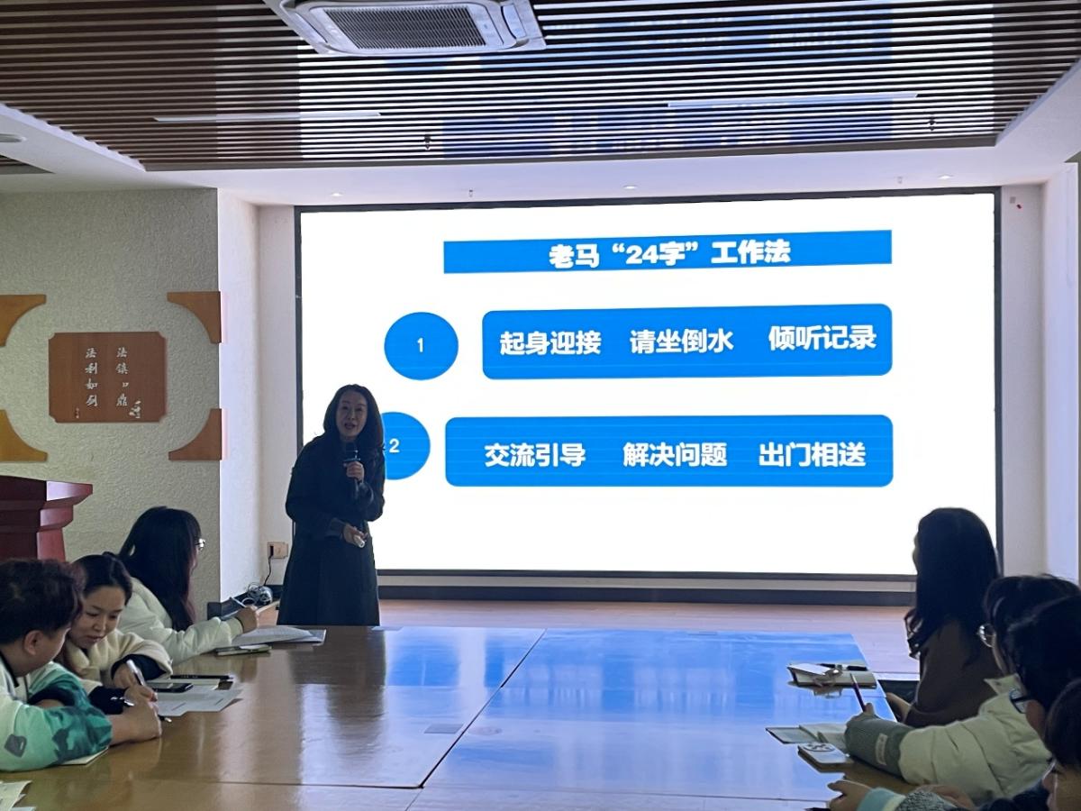 在现场,李东蜀完整示范“老马24字工作法”,即起身迎接、请坐倒水、倾听记录、交流引导、解决问题、出门相送,并特别强调 “只能用纸杯,不摆烟灰缸”的细节,诠释“安全与尊重藏于细微”的调解智慧。一句“心理问题往往大于生活问题”更是引发全场共鸣,掌声此起彼伏。